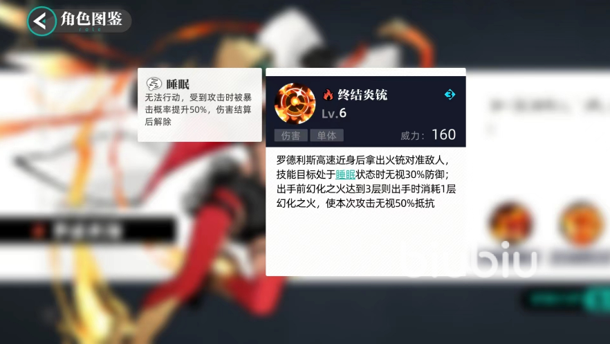 罗德利斯的一、二技能都能够为自己叠加幻化之火buff,一技能还有几率额外提高自身的攻击能力,二技能可以提高自己的暴击率,大招如果攻击了睡眠debuff的敌人,能够无视三成的防御能力,如果幻化之火达到了3层以上,还可以无视对方50%的抵抗,也就是一旦对方处于睡眠状态并且罗德利斯的幻化之火buff叠满,再肉的角色在罗得利斯面前都像纸片一样不堪一击。