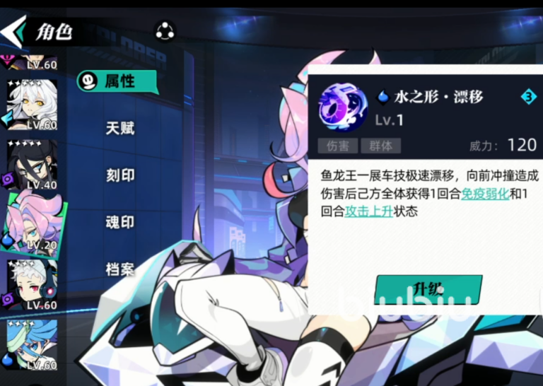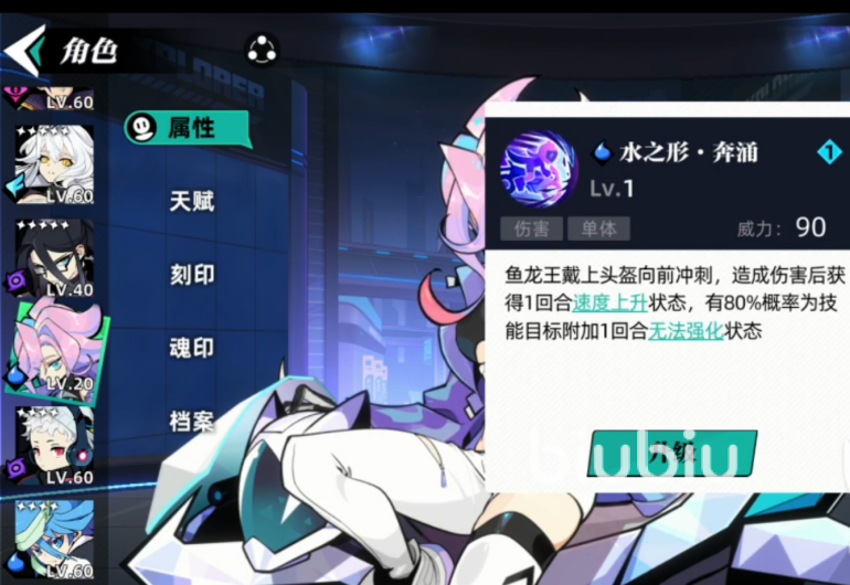 鱼龙王的三个技能都和强化状态有关,一技能有概率将对方单体的强化状态转移给随机的一名队友,二技能则能够给自己挂上一个速度buff,并且有大概率让对方单体无法强化,是一个很优秀的限制技能,大招不仅有着高额的威力,还能让全体队友获得攻击提升buff以及不会受到弱化类的debuff,能够很好的保证队伍的增益状态。