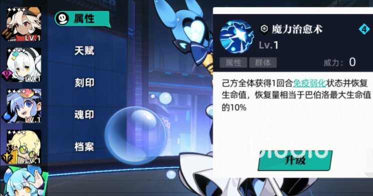 巴伯洛一共有三个技能,第一个技能就是护盾保护,可以帮助队伍叠加一层护盾,最大限度保护队友的生命安全,这个护盾将继承巴伯洛生命值的15%,也就是说,巴伯洛的生命力越旺盛,那么所能给我们提供的保护就会越多,第二个技能是被动技能,为少女的起到,可以减少友方角色的伤害效果,不过这个技能是不可以升级的,只能在被动中触发。