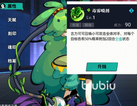 大招则是召唤一株植物,对敌方群体造成伤害,技能伤害不高,但是能提供稳定的中毒状态,可以让敌方不断地被扣学,该角色是属于持续消耗性的副c角色。