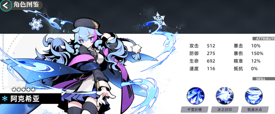 目前游戏内推出的冰系角色暂时只有一个,她就是赛尔学院的高年级生阿克西亚。一般情况下,高年级的学生在游戏内都是五星级角色,阿克西亚自然也不例外,她属于一个攻击实力超强的输出型角色。无论是在攻击效果还是技能辅助方面都拥有着强大的能力,可以帮助大家快速的进行输出,在众多角色中,她的实力强度绝对排得上前三名。