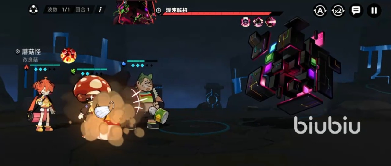 蘑菇怪的一技能是“普通菇”,可以对敌方单体造成伤害的普攻技能,具体效果就是蘑菇怪假意摔倒,接着趁敌方不注意的时候将背包砸向对手,在命中并造成伤害后,会有50%概率为攻击对象附加2回合速度下降状态,降低了他们的速度值,这样他们就无法闪避,相当于变相的增加了蘑菇怪的命中值。