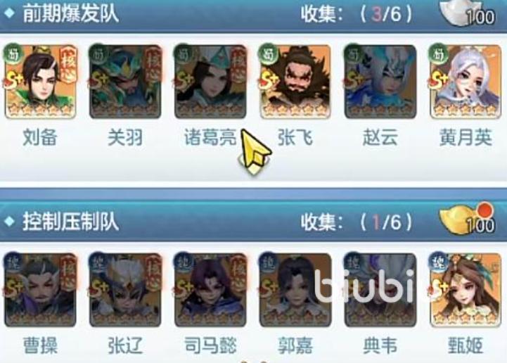 在开荒阶段阵容一定要先凑起来,不管强不强,不同功能职业定位的武将是肯定要有的,一般推荐前排至少1个坦克,后排至少2个输出,然后再搭配1个辅助武将就行。当中期资源越来越多的时候,可以适当补充一些强力的辅助武将,最好是有高减伤、高回复、有控制或者可以回怒的武将,可以让队伍更稳定,运转更效率。而到了后期,可以逐渐替上一些神话+级别的稀有核心武将,到了这个阶段往往就不是很看重“国家队”了,而是更多看武将本身的属性技能强度与定位,推荐再培养1-2个备用的主C,因为不同的副本输出环境不一样,推图倾向于高控制、群攻武将,而竞技场则偏向于高爆发、偷怒、先手压制类的武将。