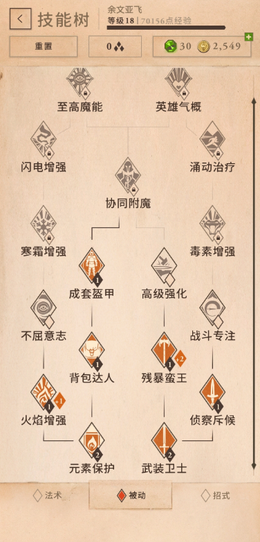 在上古卷轴刀锋的游戏中,玩家除了自己佩戴的单手盾单手剑武器之外,还会通过升级或者点亮图标来获得一定的法术技能。而如果是玩家是法术伤害型英雄的话,就会天然佩戴法术技能。