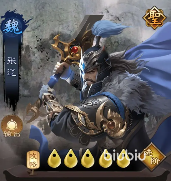 张辽有着恐怖的爆发机制,从武力属性上来看,就已经是魏国武力的天花板,能为兵刃伤害带来恐怖的基数,速度和统率也相当不错,能确保先手发动技能和兼顾生存,他的自带技“所向披靡”有50%几率发动,1回合后准备之后,对敌军2到3个目标造成240%兵刃伤,额外会对大营追加一次240%攻击,可以直接秒杀敌方如孙尚香点脆皮,是组建“爆头流”的灵魂;