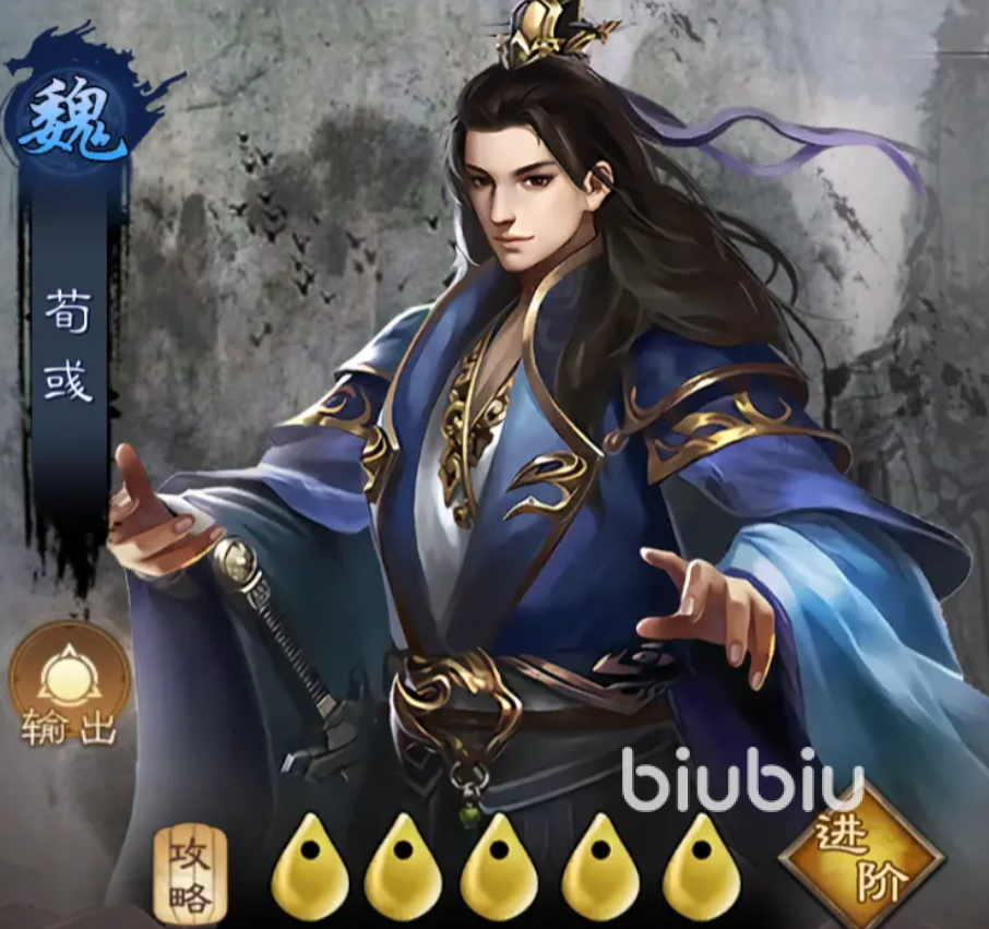 他的提炼技“全军突击”有45%几率发动,会移除我军负面效果,让兵刃伤害提升,同时对单体敌人发动攻击,此招解控、增伤加输出三位一体,哪怕是在面对控制队的时候也能进行反打,荀彧有着作为顶尖的谋略属性,并且还有独特的禁疗增伤机制,他的主动技有45%概率发动,会对敌军2到3个目标打出一次130%谋略伤,并让其无法恢复兵力2回合,这一能力让其成为续航队的克星,能克制华佗等回血武将;