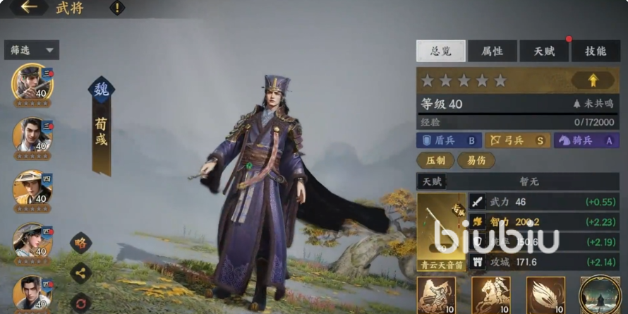 被动2“定谋贵决”,普攻后有50%概率提高队伍3.5%防御力。兵书技“渊谋远略”,让被动1易伤状态更容易触发,触发概率提升15.8%,率领队伍防御力提升18.2%。该武将能有效提升己方输出效率,还可造成额外损伤,适合与程昱搭配使用。