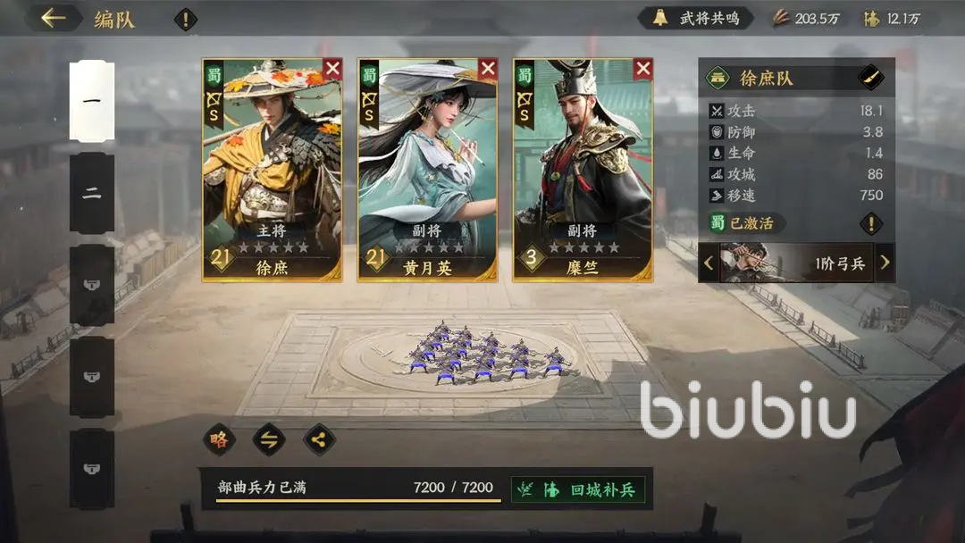 孙权是弓兵统帅,可显著提高队伍射程和攻击速度。自阿当前版本中,比较强势的阵容就是燃烧弓兵队,也是目前PVE泛用性很高的配置,孙权,周瑜,吕蒙就是关键。战术核心就是让孙权进行群体易伤,周瑜进行燃烧扩散,吕蒙进一步强化伤害,从而形成循环持续的高额输出。这个沟组非常适合去争夺资源地,挑战团队副本。虎卫骑突袭队则更加注重单体爆发,吕布,赵云,马超组成小队,吕布负责击杀敌方核心,赵云在侧翼支援,马超善于破甲控制,创造输出空间,打精英怪,或者BOSS战有更好表现。如果是开荒期,可使用王平,黄月英,糜竺构筑的开荒队伍,能顺利昨晚新手任务,拿到奖励,养成简单,性价比比较高。