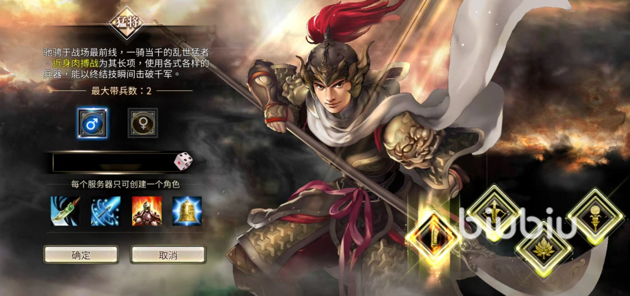 猛将玩家驰骋于战场最前端,可以一骑当先,是乱世中的猛者,擅长近身肉搏战,可以使用各式各样的兵器,以自身终结技能瞬间击败对方的千军万马。如果大家想要体会到割草乐趣,那么选择猛将是很合适的,直接冲进对方群体中释放大招,非常有三国群英传的乐趣。猛将攻击虽然犀利,但是也需要有一定的支撑,所以大家想要完好需要适当投入一些资金。