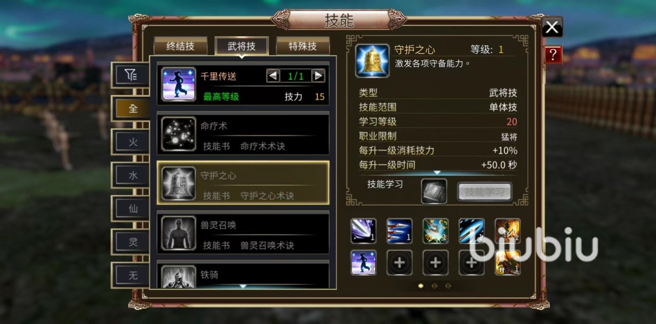 最后一个是守护之心,属于武将技,可激发出自身属性增加各向守备能力,毕竟冲锋在前,如果没有一定的坦度根本打不出伤害,在国战中面对敌方的围攻,该技能重要性非常突出。此外猛将可以使用的武器也非常多,从终结技方面来看,无论是长兵器、短兵器还是重武器以及双手武器都能够熟练应用,这样在选择武器的时候就多了很多途径,搭配起来也更为自由,所以战斗感受是所有职业中非常出色的一个。