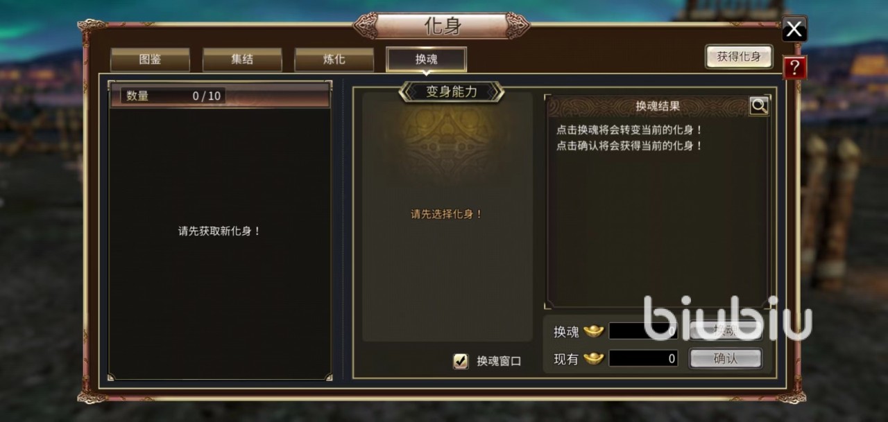 大家首先在主页面中点击化身,然后可以看到其中的换魂功能。换魂列表显示的化身,获得会先收到换魂匣中,获取的途径包括活动元宝抽取、九周化身录、炼化或者是使用换魂卡等。在换魂功能的换魂匣中最多可以保留10个化身,达到数量上限后就不能重新获得。换魂品阶化身已经全部解锁,获得不会进入换魂匣,直接转换成相应的幻符。