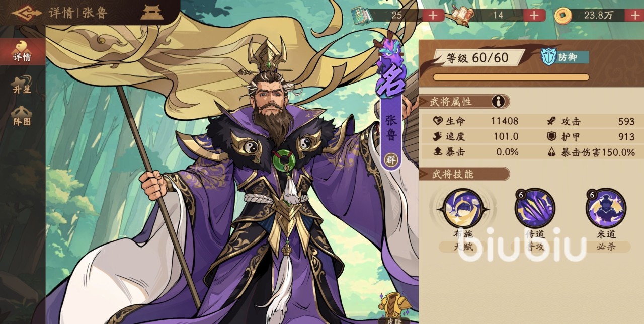 张鲁是阵容中的前排扛伤角色,抗伤越多额外护盾也就越厚。所以选择坚如磐石,让自身在残血的时候也能获得高额免伤能力,在提高星级之后还可以额外恢复自身血量,是一个被很多人忽视的肉盾。糜夫人是奶妈,拥有群体回血能力,后续还拥有集体提升速度值和护甲的效果。至于诸葛亮保证速度之后拼命堆伤害,是阵容中的主c。
