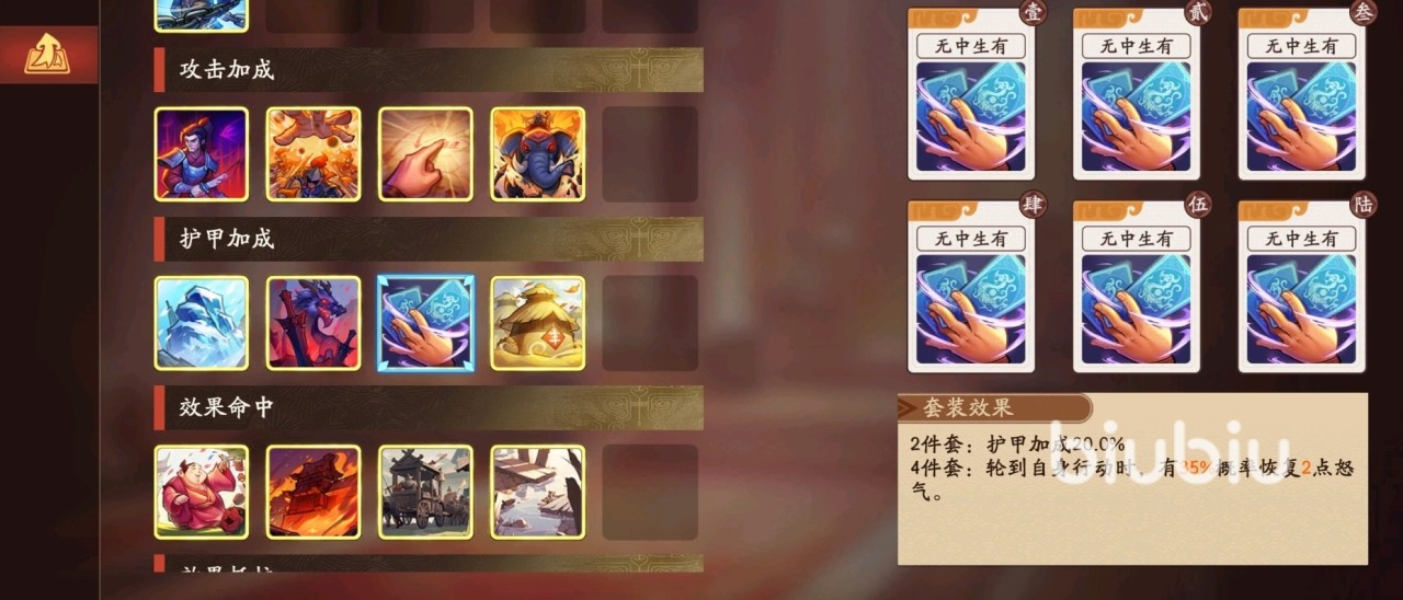 在具体搭配方面,小乔可以选择无中生有四件套,再加任意生命护甲两件套就可以了。锦囊,4号位选速度,5号位选生命,6号位选生命,或者是护甲。副词条速度优先,然后是生命和护甲。携带无中生有是为了保证队伍的怒气可以一直处于循环状态,不会出现断层。专武可以选择周郎顾曲或者是妙笔,有了周郎之后,开局就可以提高伤害,同样是为了强化关羽的输出。
