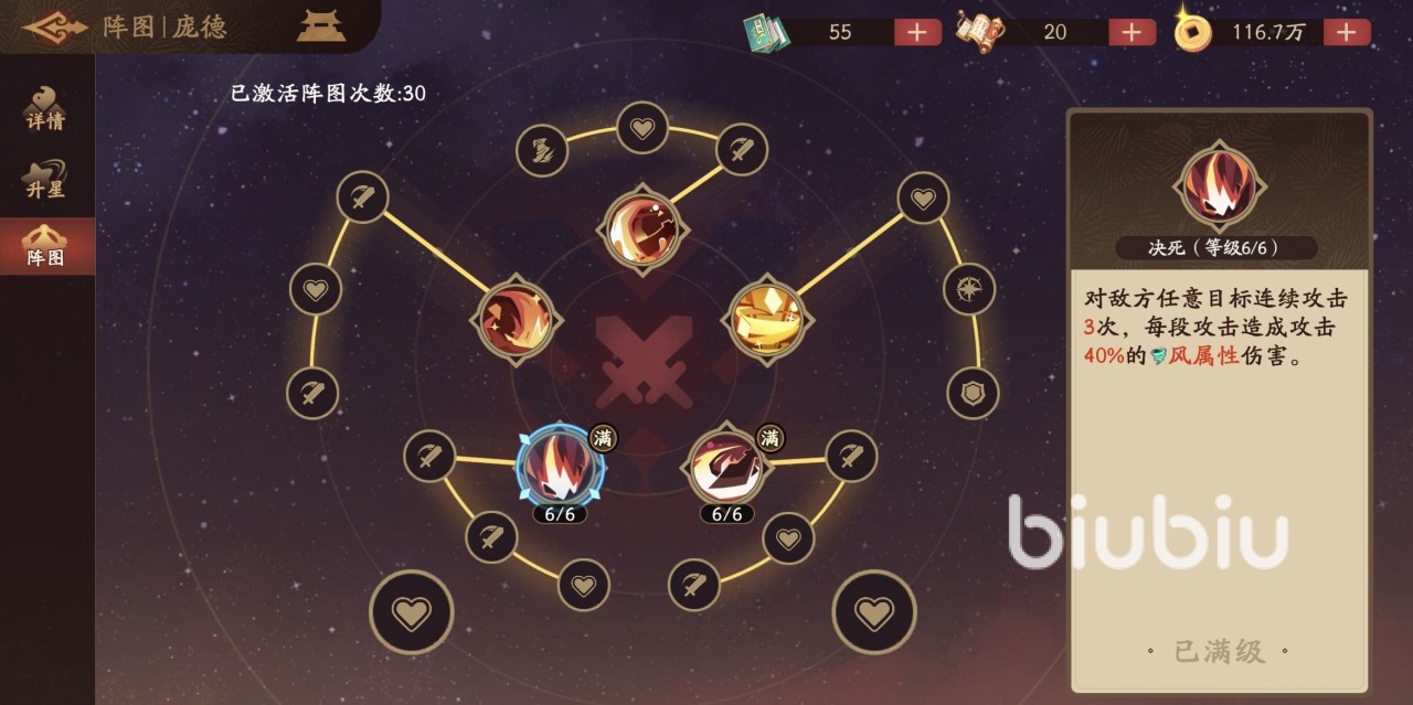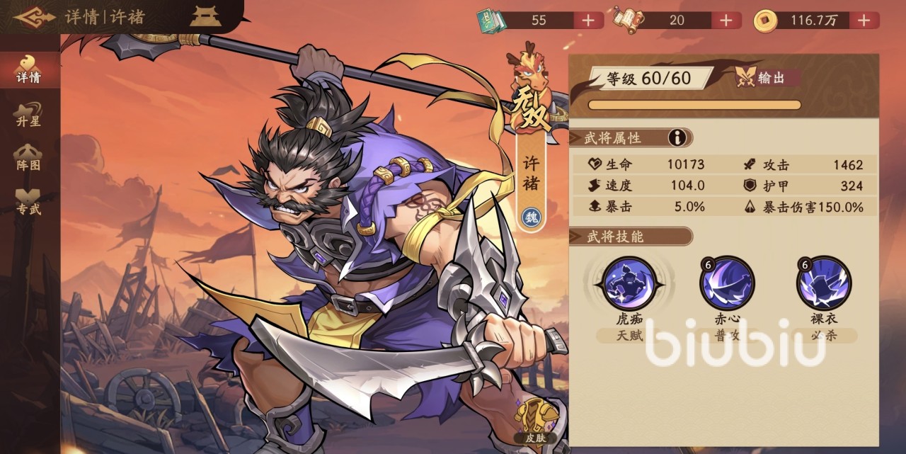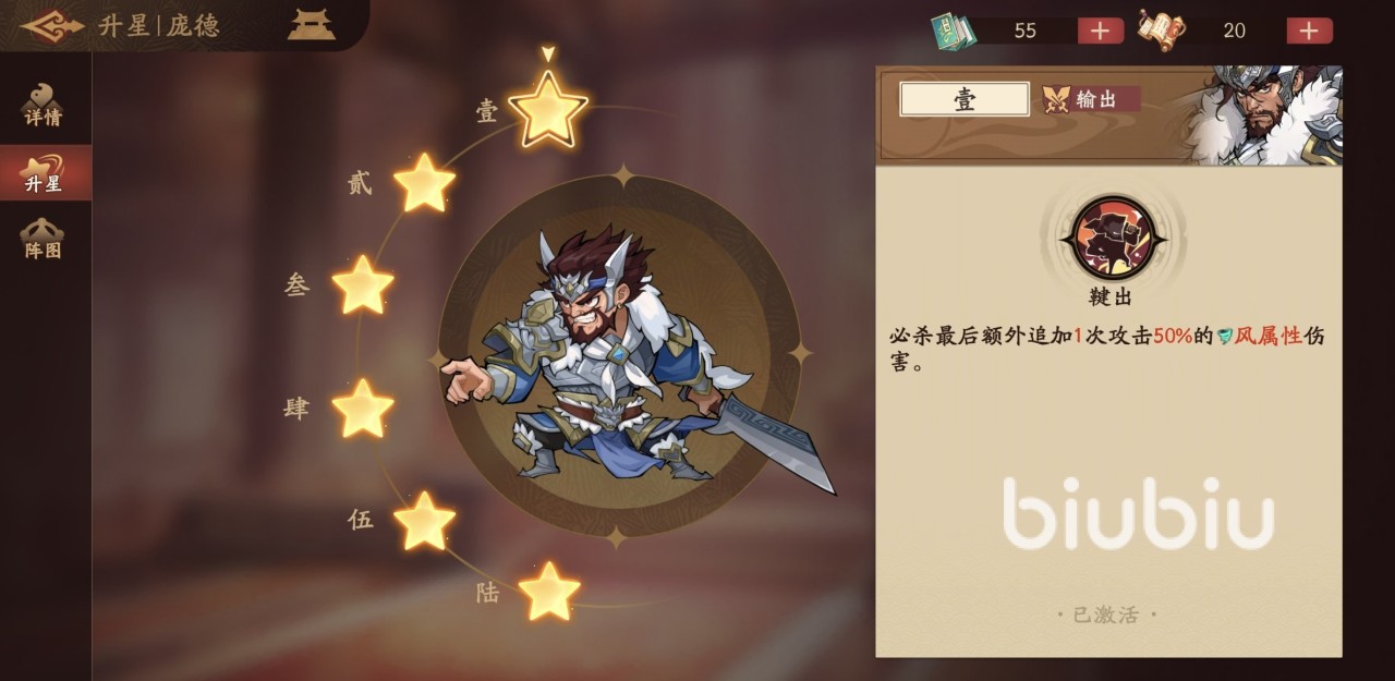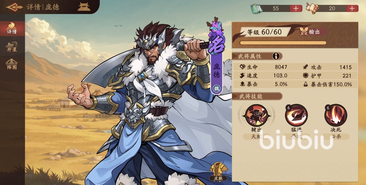 如果大家想快速上手游戏,了解更多角色技能效果,一定要来九游查看攻略。九游是手游福利最好的平台,在这里有签到抽奖福利,玩游戏可以领工资。还有节假日活动万元无门槛券免费抽,目的就是为了让用户0元也能轻松玩游戏。庞德是属于紫色品质的输出型武将,他的必杀技是可以对任意目标连续攻击三次,造成风属性伤害。天赋效果是每段必杀造成的伤害后,都有几率降低目标身上的一点怒气,最后一次攻击还可以附加额外风属性伤害。所以这个输出型武将的伤害尚在其次,但削弱怒气是很有价值的一点。