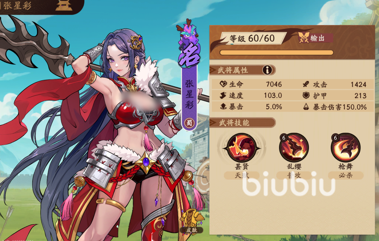 张星彩是名将稀有度的输出定位角色,隶属于蜀国,初始就有150%的暴击伤害加成,在局内的定位里面属于是前排战士类型的输出,主打的是近战。虽然有一定的输出力,但是她的打击方向均为前排单体,如果遇上前排坦克加法师的阵容就比较难过墙。