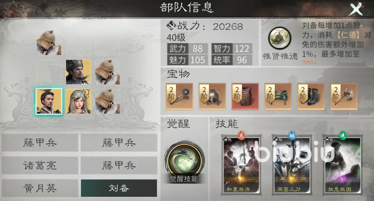 玩家如果想要让自己打造该阵容的话,那么刘备是非常重要的选择,其拥有双追击格,可同时为赵云和庞统提供额外行动回合,大幅度的提升队伍的技能循环效率。赵云更是可通过天赋“七进七出”多次触发追击,配合高收益技能层峰叠刃、白虹贯日等可打出持续的爆发伤害效果,而庞统则是能凭借“连环计”天赋造成高频范围伤害,搭配轰雷掣电补伤或兵不厌诈等可进一步增强控制的效果。