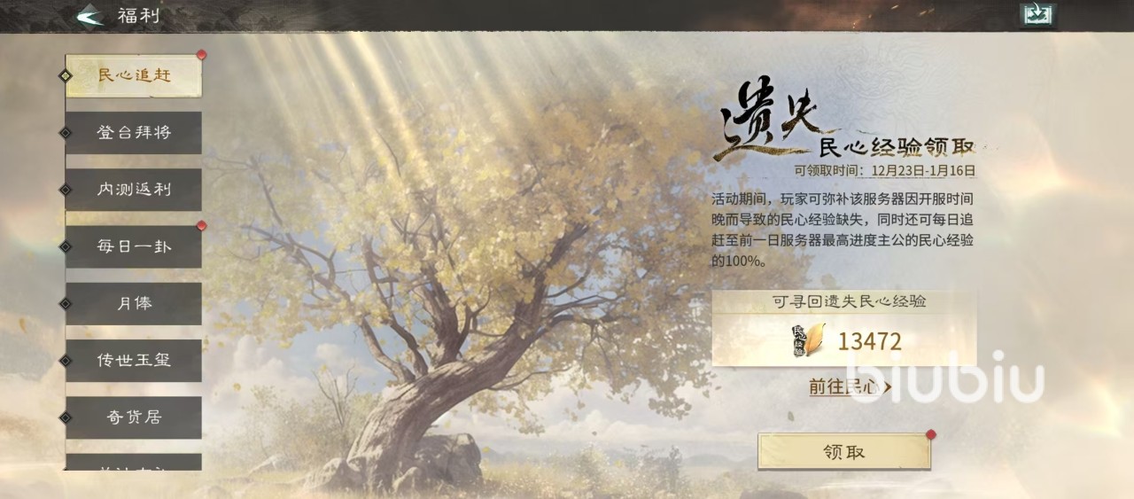 首先介绍一下测试中的福利,主要包括民心追赶、登台拜将、内测返利、每日一卦等。民心追赶的优势是在测试期间,玩家可以弥补服务器因开服时间晚而导致的民心经验缺失。还可以每日追赶至前一日服务器最高进度的玩家的经验,所以不用担心民心落后的问题。登台拜将指的是在开服的43天时间之内,每天登陆都会赠送一个武将,其中还有很多是随机获得的绝世英雄,帮助大家轻松养成阵容。内测返利指的是在本次测试期间,所有的充值在公测后都会通过元宝和玉髓的形式返还,性价比很高。每日一卦指的是每天可以通过卜卦来获得更多的奖励。