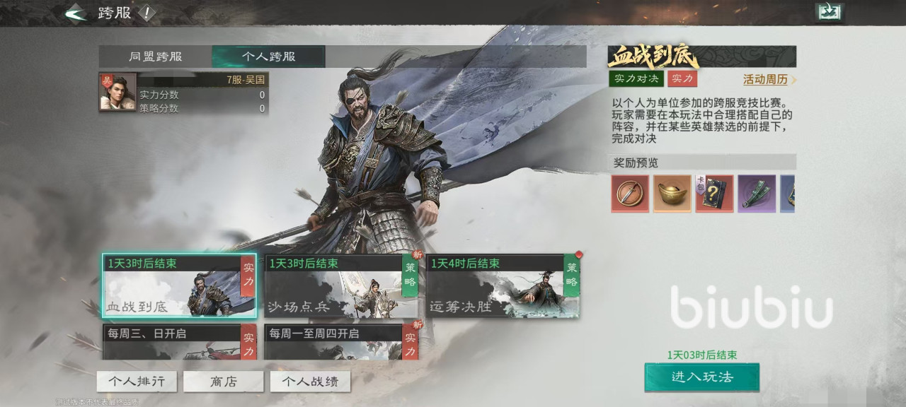 血战到底是属于游戏中的跨服玩法,而且是个人跨服,所以和国家以及势力没有太大的关系。该活动需要以玩家个人为单位参加竞技比赛,要合理使用养成队伍参与,这项活动最独特的机制就在于自身的英雄禁用机制,需要在此前提下完成对决。