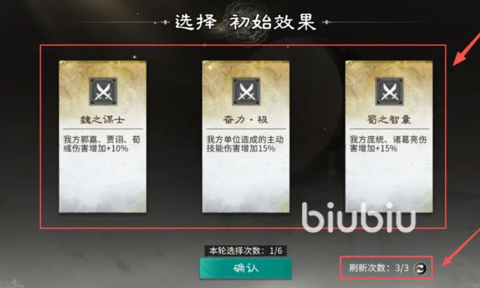 失败5轮后血量会直接清零,正式开局时会提供卡牌效果,有技能、士兵、宝物等,大家可以随意进行选择,在第一轮选择时有3次刷新次数,大家可以使用刷新,完成对决时,将根据胜利轮次以及玩家剩余血量进行排名。