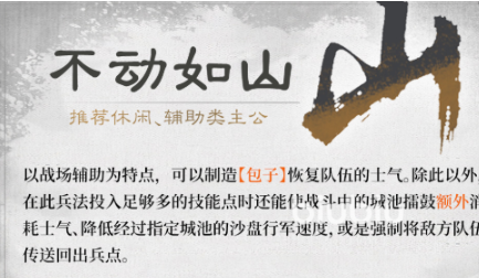 最后一个“不动如山”,主要是阵地防御选择,通过道具制造回复队伍士气,还能给城池擂鼓,额外消耗对手士气,降低敌军行军速度,还能强制将敌方队伍直接传送到出兵点,能有效提升防线韧性。