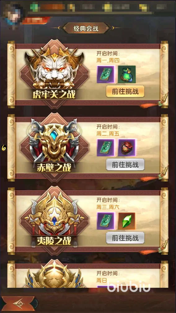资源分配需聚焦核心产出。集市每日限购经验书必买,功勋商店兑换粮草保障发展,跨服商店优先兑换突破石。圣兽秘境产出的首饰装备可通过击败镇守者提升掉落率,建议每日打满5次化身次数。经典会战按周开放历史战役,虎牢关产材料、赤壁出米酒、夷陵掉精炼石、官渡送拜帖,建议根据需求选择参战。