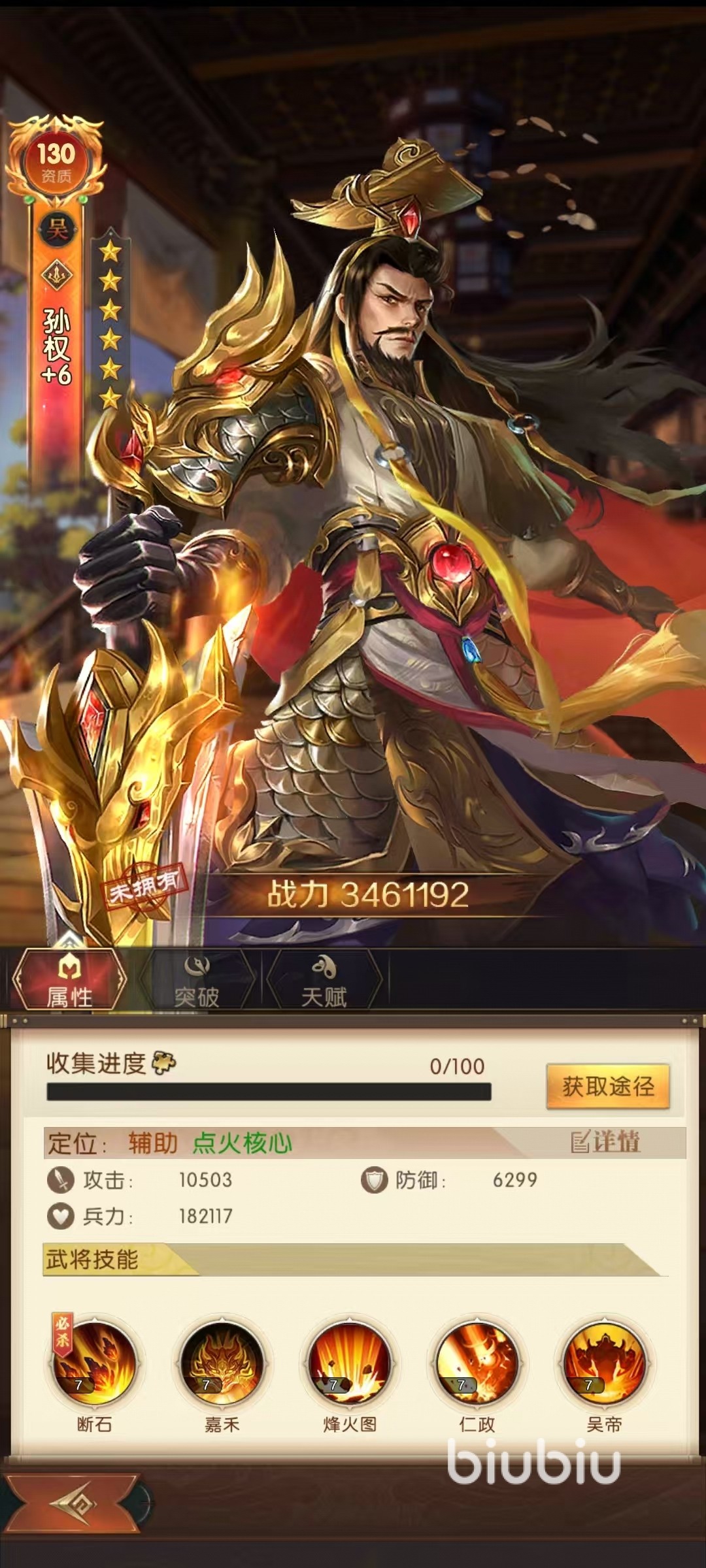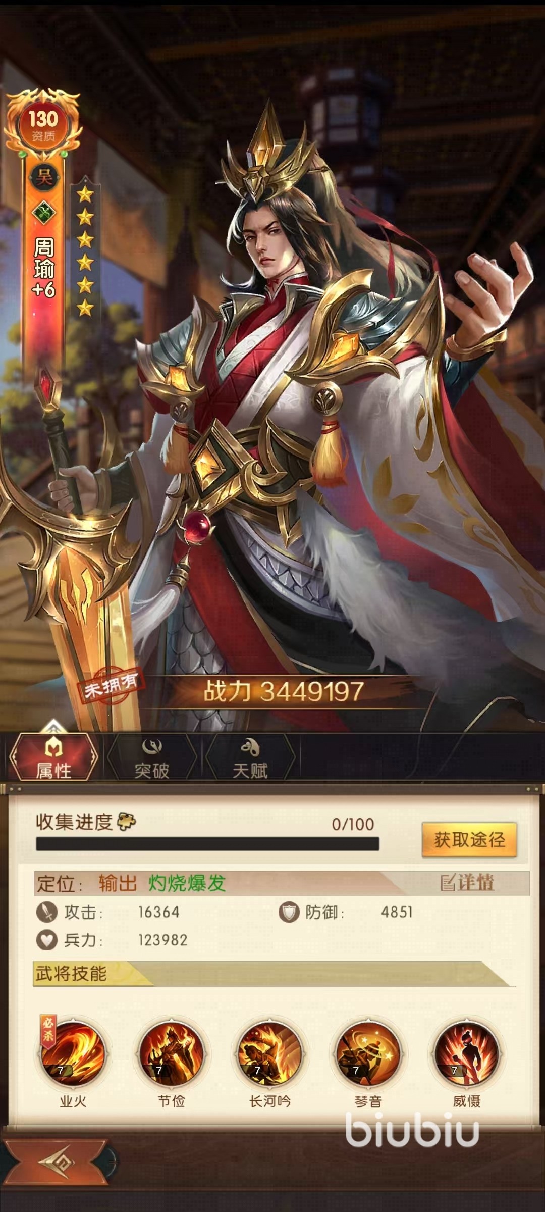 以上是属于比较基础的搭配,后续红将组合选择的是陆逊和孙权作为前排,周瑜、大乔、布练师作为后排。这里面的周瑜是主要输出核心,孙权是点火核心。孙权效果是只要在场上,所有吴国武将受到攻击时,都有几率对目标施加灼烧,这样很快就可以将对方全部点火起来。周瑜大招释放时候会优先选中被灼烧的单位造成攻击伤害,敌人被添加灼烧,就有机率使周瑜恢复怒气。