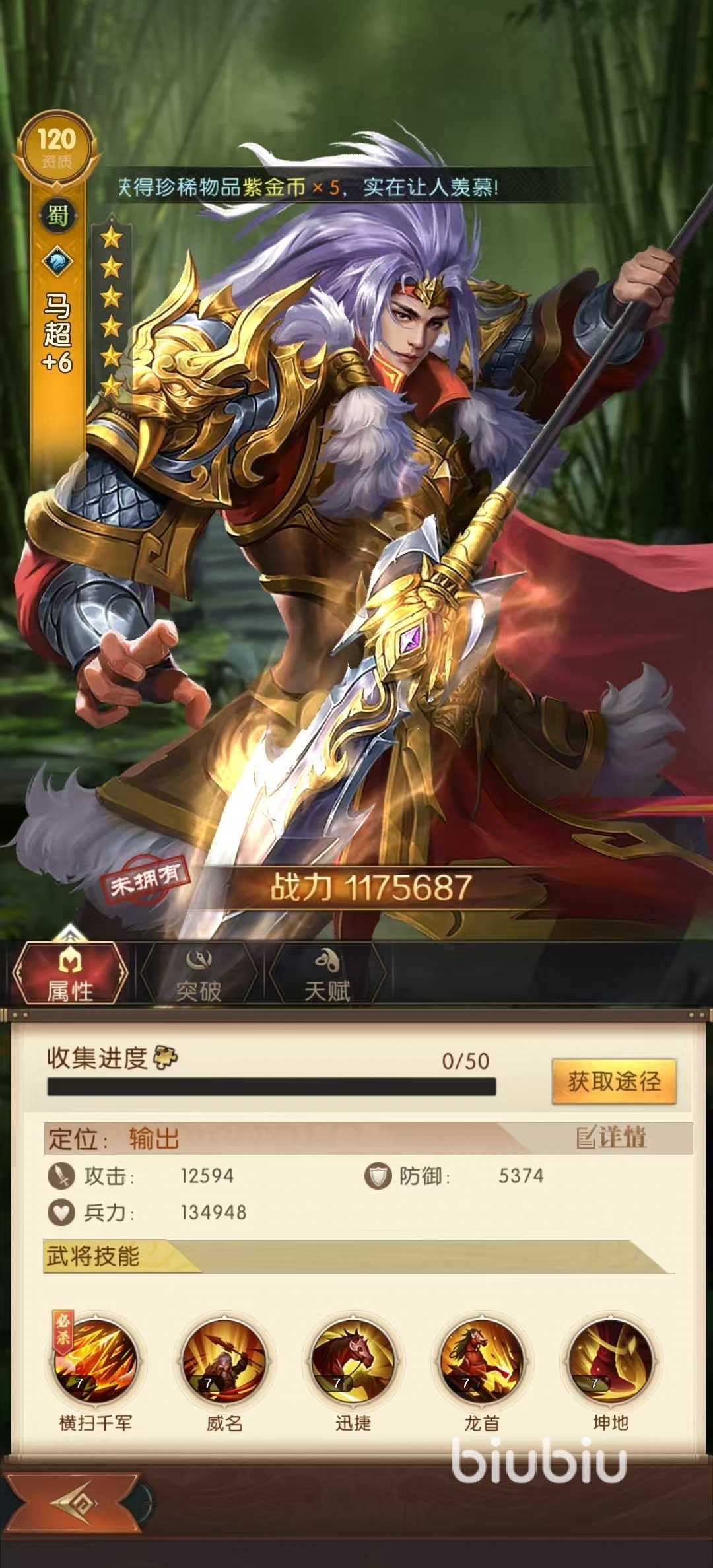 黄忠是后排稳定单体爆发,它的技能偏向于定点打击来收割残局,通过战法和普攻,可以直接锁定敌方兵力最低的目标进行输出,并获得额外伤害加成效果,如果使用战法击杀敌军,还有几率再次发动。马云禄的作用是为群体添加辅助,在入场之后,可以提升场上所有蜀国阵营武将攻击速度,当自身触发连击时,还可以为额外的一名武将提高攻速,这样本来就已经爆发很充足的蜀国国家队,将会再次提高群体爆发速度。战法技能还可以将目标缴械,这样也能提供一定的控制。