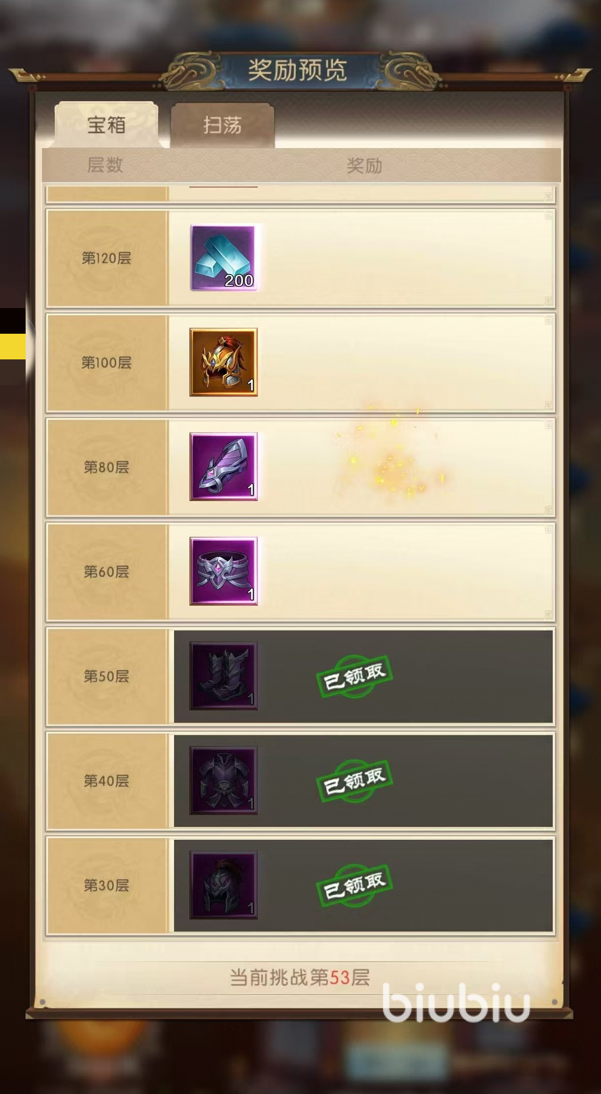 因为这项活动对于出战武将没有限定,所以大家按照自己主力队伍去战斗就可以了。当通关15层之后,就会解锁扫荡奖励,已经通过了关卡层数每天都可以进行扫荡,这样能拿到一定数量的奖励,每天首次扫荡免费,后续需要花费元宝后才可以进行扫荡,层数越高获得的奖励就越多。在通关30层之,后可以解锁挂机资源奖励,通过挂机可以积累一定数量的精铁和铜币,但要注意每次挂机是有着上限的,最多累计48小时,所以要及时收取。