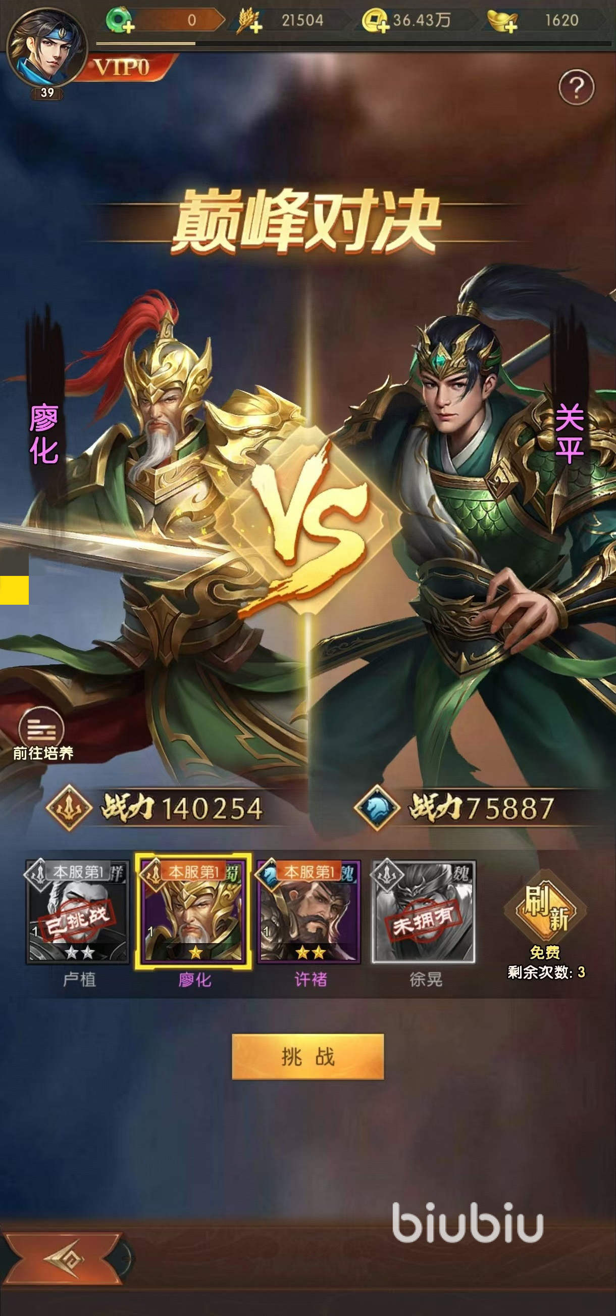 至于大秘境活动,其实就是一个爬塔玩法,主要掉落装备和强化装备道具,这里没有武将限制,大家找出一对最强的不断挑战就是了。只是要记得每天扫荡,有了高战力之后继续来闯关。巅峰对决,是获得神器和对应强化材料的来源,每次都会有4名武将来让大家去挑战。可以选择不同的难度,但每次只能挑战一个关卡,关卡难度越高获得的奖励就越丰富,也是比较考验玩家硬件配置的一项活动。
