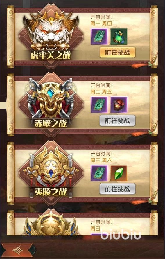 经典会战这里面一共有4场战役,每场战役都有特定开放时间,大家根据活动展现的开放时间去进行挑战就是了。这里最主要的是对出战武将阵营限定有要求,所以在布阵时需要多加留意,也是一个比较考验大家英雄培养深度的活动。每个战役都设有多个关卡,只有将前一关卡胜利后,才会解锁下一关,部分关卡还需要达到等级之后才会开放。大家要想在经典会战中获得好成绩,一定要多培养不同阵营武将,这样才能充分利用机制。