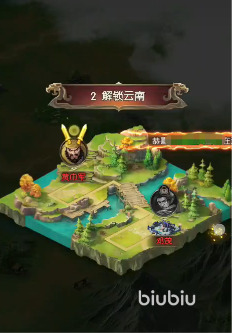 下一个城池的话就是云南,解锁之后,我们就可以看到这个城池所驻守的boss。例如邓茂或者黄巾军。我们想要挑战的话,直接点击他的头像就行了。之后就可以一键布阵,布阵完成之后点击出战,就能开启新的战斗。自动战斗也很容易,只要自己的战力达标就能通关。