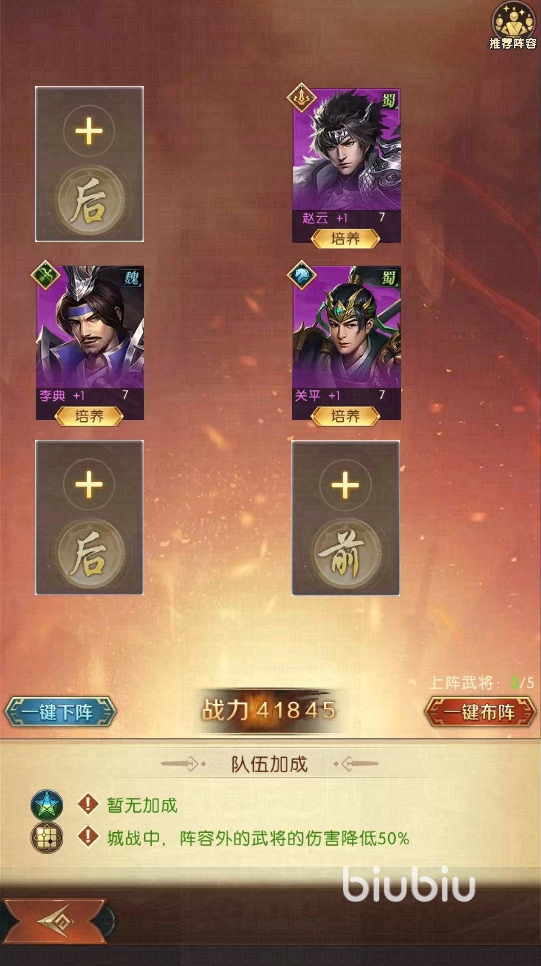 值得注意的是,如果选择挑战的武将不培养,是无法完成后面关卡的,当过不去关卡时,利用武将一键培养的设定快速前往培养武将提升战力继续战斗。另外这个副本较难刷到橙将以及红将神器碎片,如果大家积攒了足够数量的陨铁,但因为神器碎片数量不足而无法提升,可以选择在元宝商店中购买合适的神器碎片。