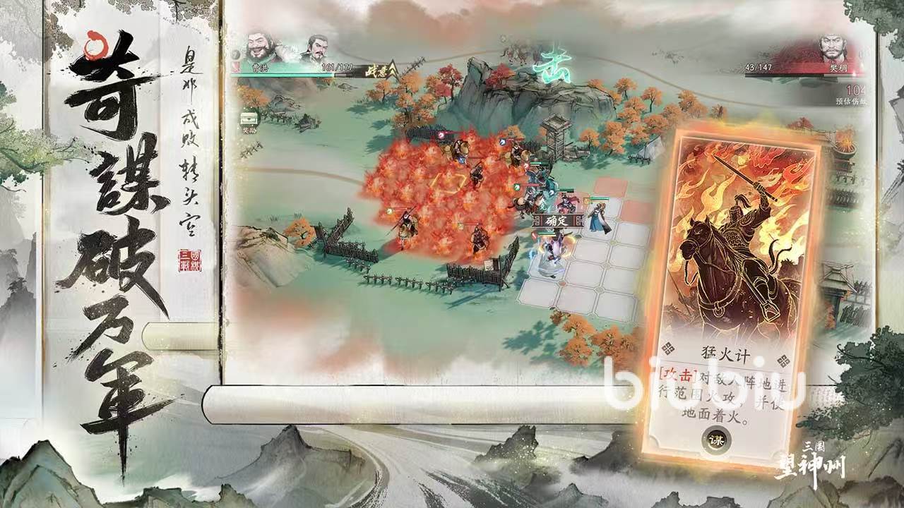 在玩法方面采用的是战棋模式,整个战场被化成了棋盘,通过走格子方式来展开战斗。游戏有策略的地方在于需要考虑到合击、卡位、撤退、地形等各种因素。战斗中还引入了奇谋系统风云水火、日月星辰等自然元素,都将化为奇谋。例如猛火、洪水等,为战斗增添了更多的变化和趣味性。游戏中也有着丰富武将系统,每个武将技能和属性都不相同,需要合理搭配阵容,考虑到阵营加成以及技能配合,在这一方面也是有着一定的策略性。玩家在游戏中除了进行战斗之外,还有着奇遇系统,在神州大地上有着大量精彩剧情表演,玩家可以寻访名臣,在这个过程中还将发生很多意想不到的剧情故事。
