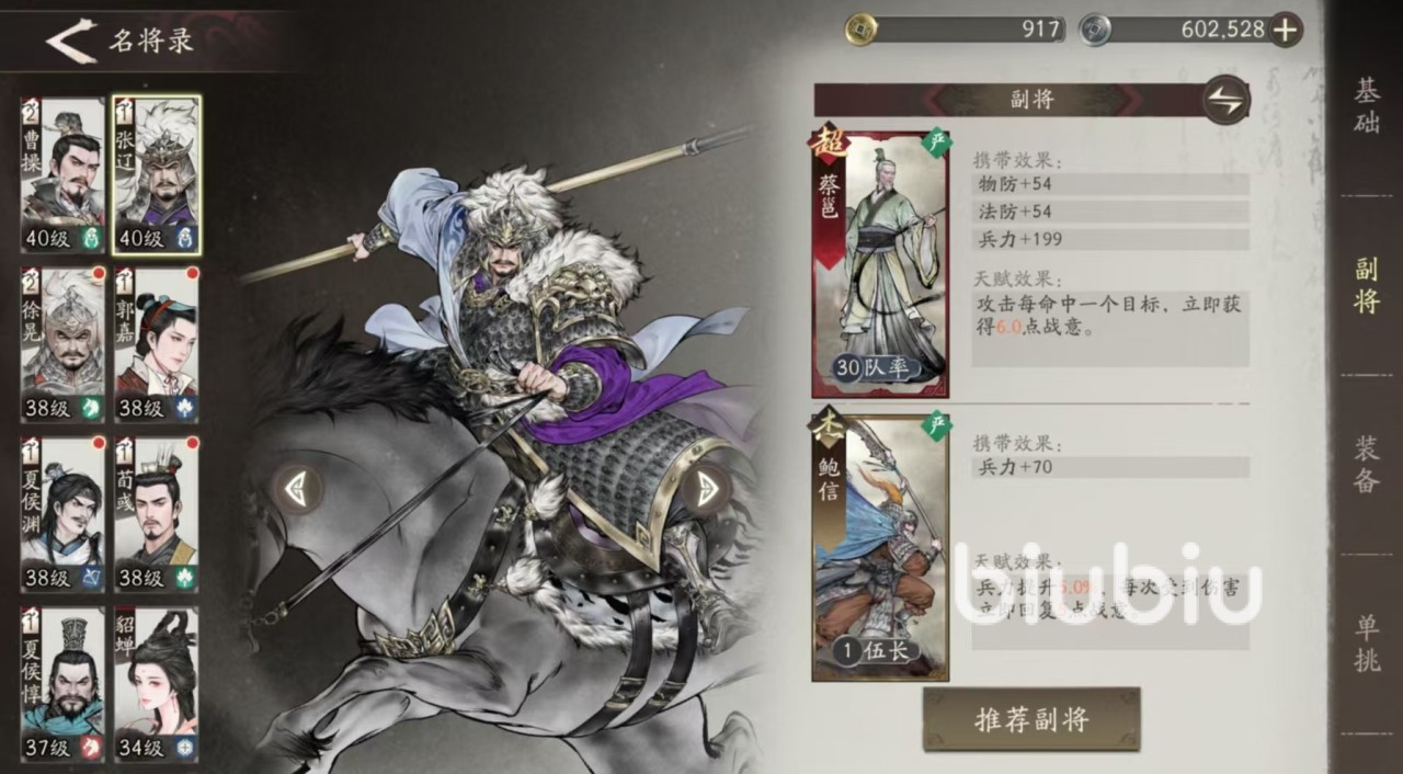 大家在通过寻访获得了鲍信之后,就可以着手进行搭配了,点击主将,然后再点击副将,选择副将上阵。注意不同副将,提供的属性是不同的,副将提供的属性不亚于武将升级之后增加的属性,所以这是提升战力中很重要的一环,后续还需要进行培养。在修建好符节台之后,就可以点击进行副将的养成。通过功勋和铜印黑授,可以进行副将的等级提升以及晋升官职,这两项对于属性都有着很重要的影响。