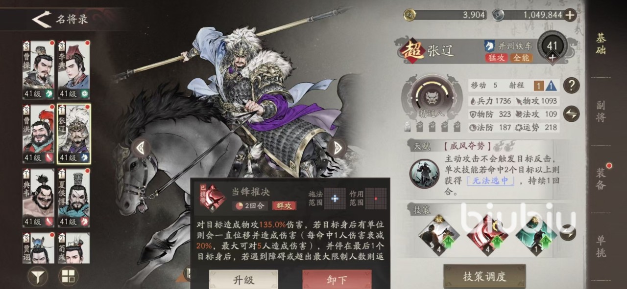 张辽作为骑兵型武将,机动性非常强势,很适合开荒的人选,在转职之后还能给队友提供增益关键的技能,赋予队友冲锋效果,大幅度提升队伍机动性。对这套全骑兵阵容来说,张辽是核心发动机。夏侯敦是前排肉盾型角色,利用自身受到伤害后反击和吸血,既能够打出伤害又能稳稳站在前排,帮助队友减少伤亡。