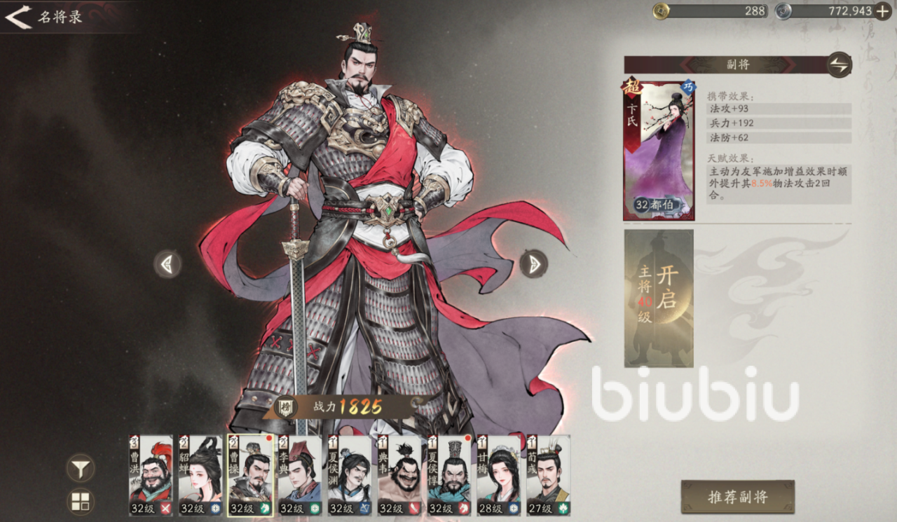 副将方面只推荐卞氏,她的效果是主动给队友添加增益时,额外提供8%物法攻击2回合能完美适配曹操的辅助能力,装备方面直接一件穿戴即可,系统推荐的就是最适合他的,只要注意武器带好主动攻击,次要旋转法术攻击就可以了。