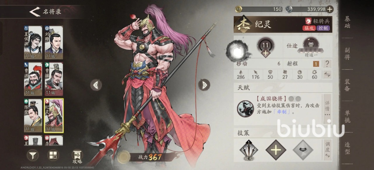 正如前文所说纪灵不适合作为队伍的主将,他更适合的位置其实还是副将,在队伍搭配上可以搭配张辽等强势骑兵英雄,配合骑兵英雄的技能效果控制敌方的技能输出,而且他高阶后还拥有一定的承伤能力,可见纪灵在队伍中可以承担一个可控可抗定位的角色。