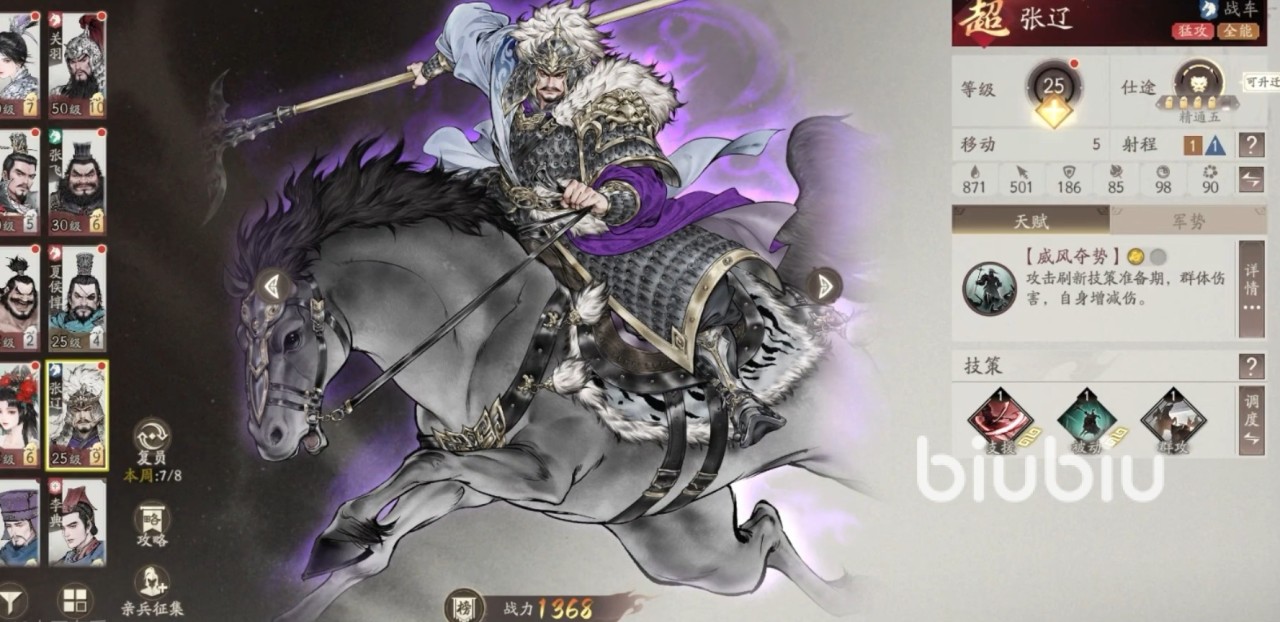 推荐一:张辽,他属于前期性价比最高的武将,张辽堪称零氪玩家的开局首选。其主动攻击时禁用敌方反击,克制近战反击型武将,战斗初期就能占据先机;技能释放后对直线范围敌人造成伤害,若命中 2 个及以上目标,自身进入 “无法被选中” 状态,适配单兵突袭、敌后骚扰战术。转职为骑兵后,会解锁范围增益技能,可提升周围友军战力,还能为我方骑兵附加 “缴械” 效果,兼具输出与辅助价值,总的来讲是一位前期可快速抢占地图资源点,后期在阵地战和突袭战中也能稳定发挥的武将,泛用性很强。
