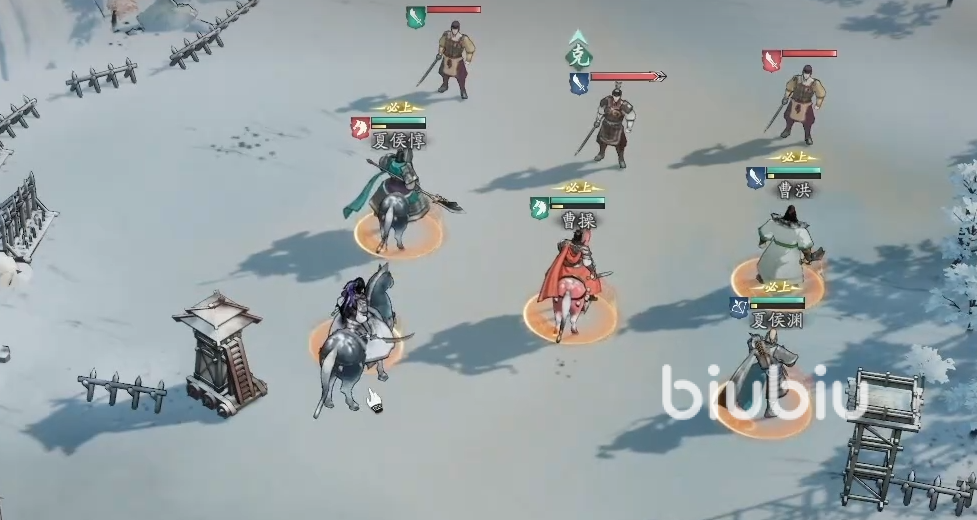 而且由于没有走到后面敌人的范围,所以他们是不会动的,这招可以帮助分批解决敌人,后续的战斗就非常简单了,让夏侯惇呆在前面的位置,吕绮玲稍微后撤一点,去把剩下的小兵给依次解决。