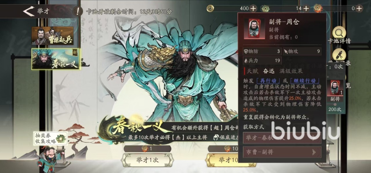 三国望神州周仓怎么样 三国望神州周仓强度分析