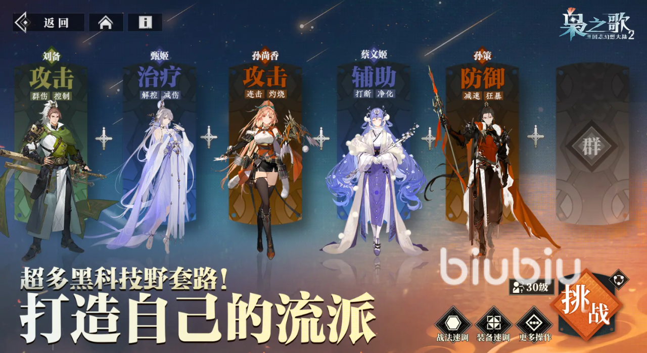 三幻2在延续了初代的优点之余,也做了更多的创新,比如角色可以自由转职,一个角色可以有多种玩法。羁绊搭配也更自由,养成方面所有角色也依旧可以升到无双,不用担心数值焦虑。