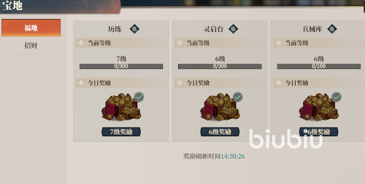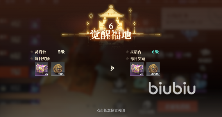 建议在过灵启台挑战的时候,都刷到同样的等级,比如说攻击觉醒7级,那么另外2个觉醒也都刷到7级,这样就可以提升“宝地”的等级,提升挂机收益。