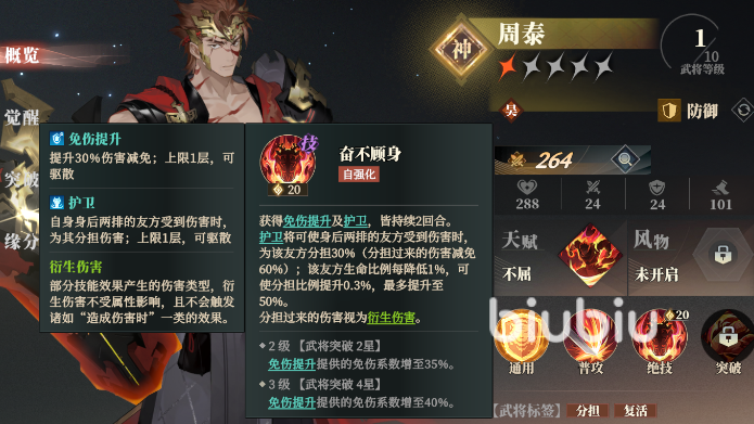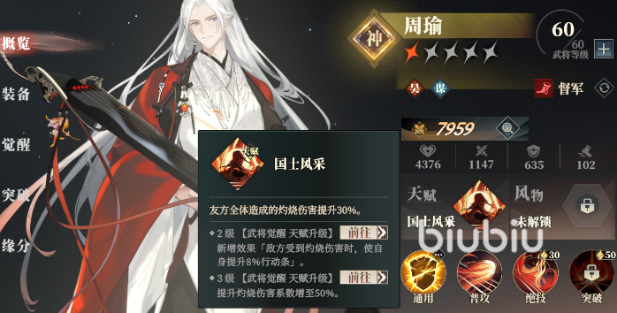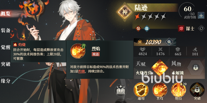 最后是周瑜突破3星解锁主动突破技,可以立刻引爆所有敌人结算灼烧层数与伤害。周瑜的这个突破技需要前面这3个都齐全后才能发挥最大威力,不然叠不了几层,不仅能耗高,结算伤害也一般。