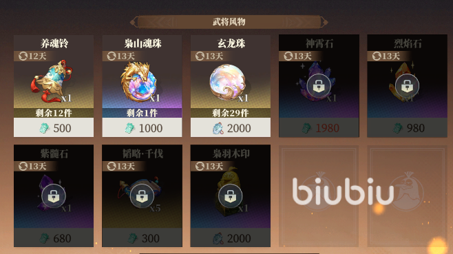 抽卡获取想要武将的魂石是有比较看脸的,除此之外还可以通过“养魂铃”来获得指定武将的魂石,需要消耗灵犀玉来购买,而且数量有限,也就是说在不抽卡的情况下,想一个武将满星是需要一定周期的,得多参加公会战、演武场、以及无双试炼。