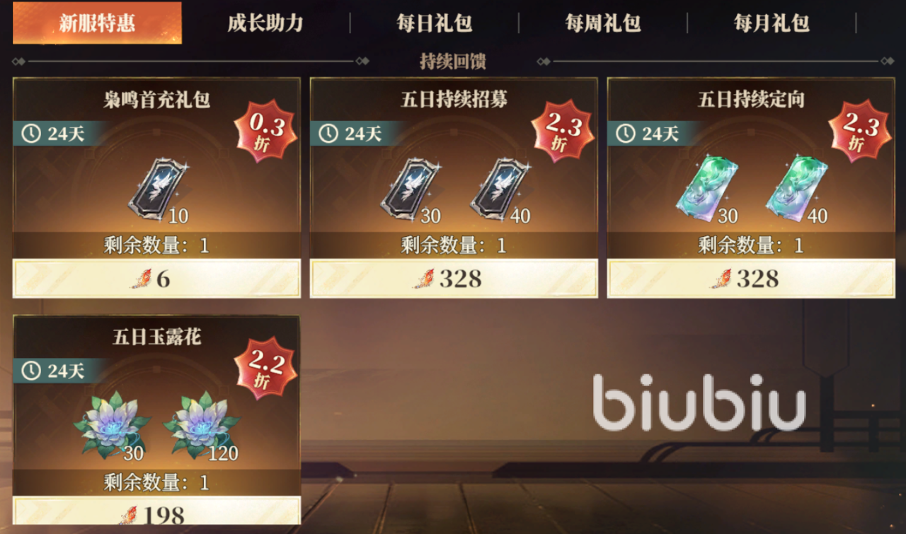 这个折扣力度还是很大的,因此如果三山壁用完了,打算氪金抽心愿池的话,尽量是买礼包抽,或者用氪金首充双倍的三山壁来兑换七杀符,这样会比较划算。