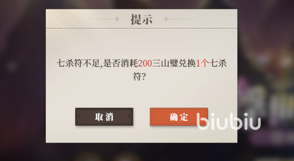 七杀符不够的话,可以直接用三山壁购买,200三山壁可以兑换一张七杀符,也可以10连抽。50抽保底一个神将,可以设置2个心愿神将,这样在保底的时候,心愿武将的获取概率提升到70%。