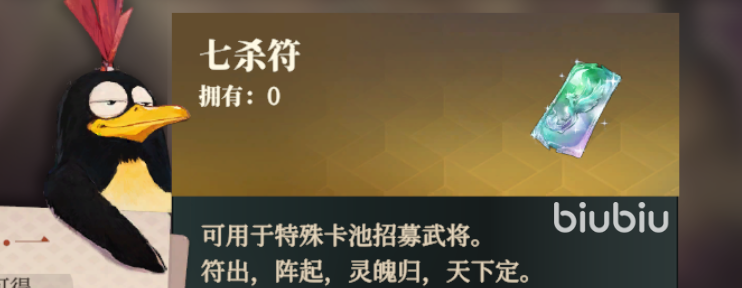 关于三国志幻想大陆2枭之歌七杀符的获取与用途就给大家介绍到这里了,它是区别于常驻抽卡券的一种抽卡道具,可以设定心愿武将然后用于抽取心仪武将,长期玩的小伙伴可以多攒一攒七杀符或者三山壁来扩充自己的武将池。