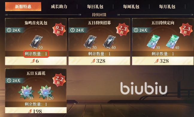 首充党,6元,半杯奶茶不到的钱就可以入手10个常驻抽,还是很值的,折扣力度高达0.3折。至于其他礼包则可以根据个人喜好与预算来合理规划了。