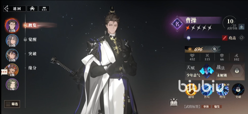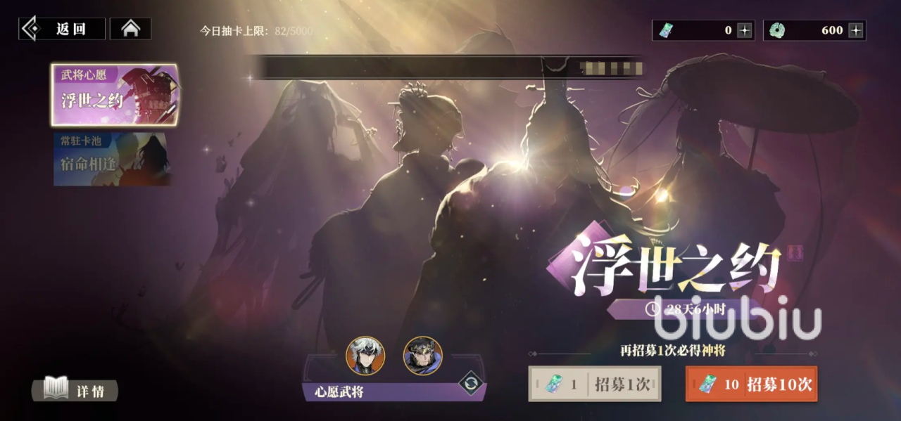 卡池的角色也有相对比较推荐大家去抽取和培养的,第一个曹操,是名将,擅长单体点杀,对单体敌人有较强的输出力度;第二个吕布,拥有无敌群伤的能力,在开荒时期很占优势,可以说是开荒必选角色了。