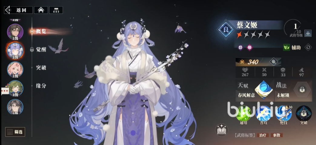 第三个蔡文姬,虽然她只是一名名将,但是首先获取上非常简单,很容易抽出来,其次她是一名奶妈辅助,在开荒时期的提升生存能力非常重要;第四个甘宁,初期的推线神卡,抽到无脑养就可以了;最后是孙开朗,也是必练的角色,这些武将基本就能组成初期比较好用的阵容了。